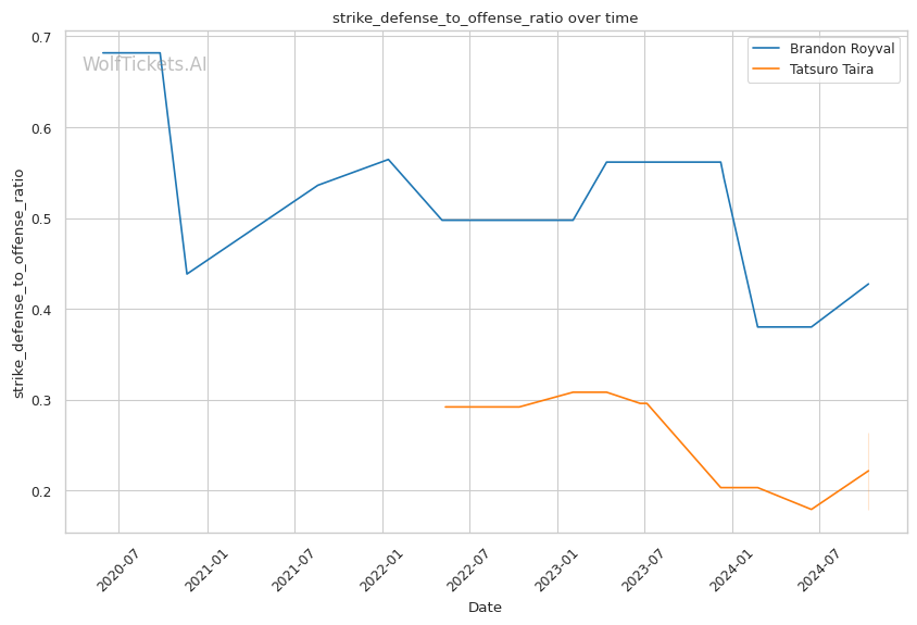| Significant Striking Defense to Offense Ratio | 68.20% | 42.44% | 107.27% | |