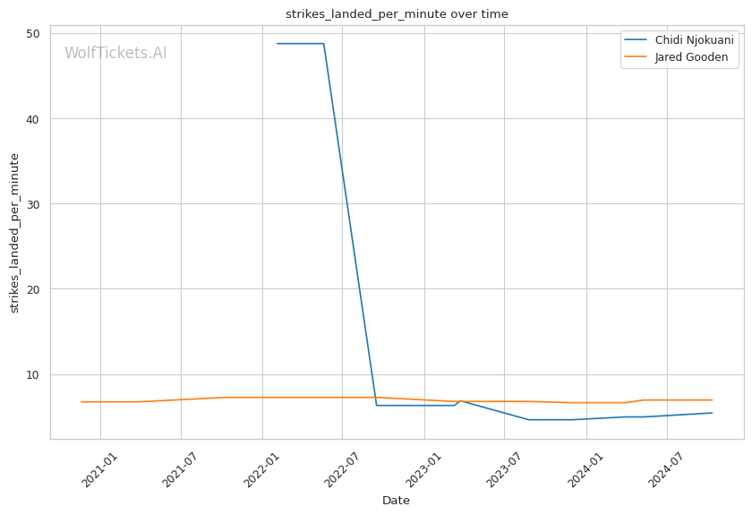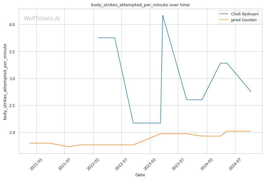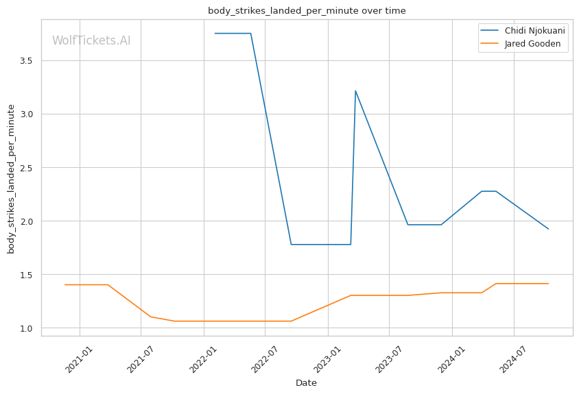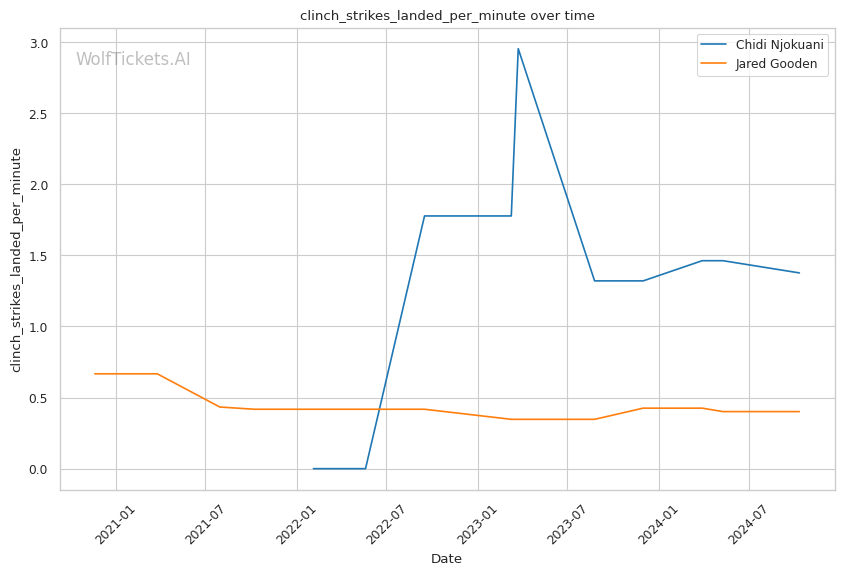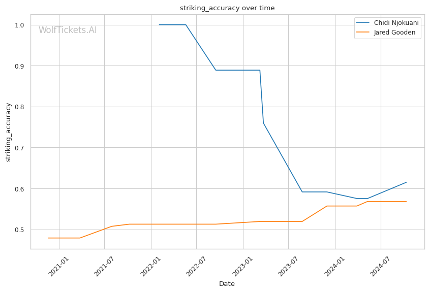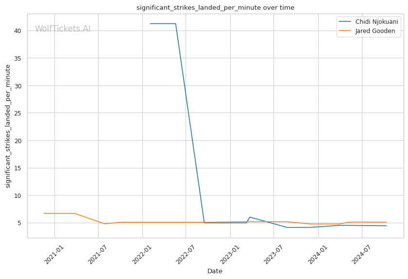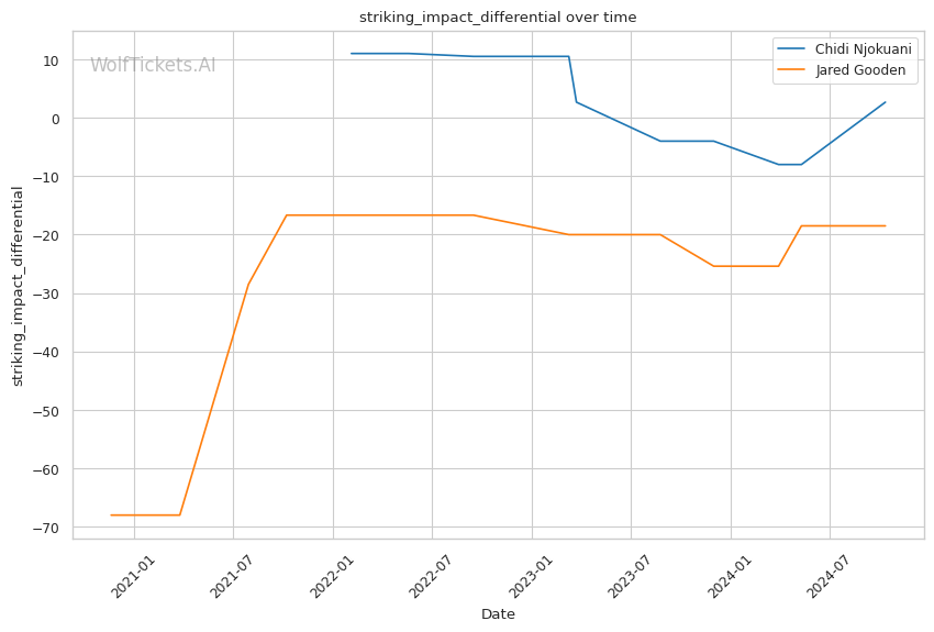 Recent Form: Despite the KO losses, Njokuani's positive recent trends in key metrics compared to Gooden's downward trajectories.