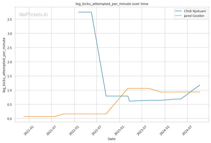 | Leg kicks Attempted per Minute | 1.180 | 0.936 | 0.786 | |