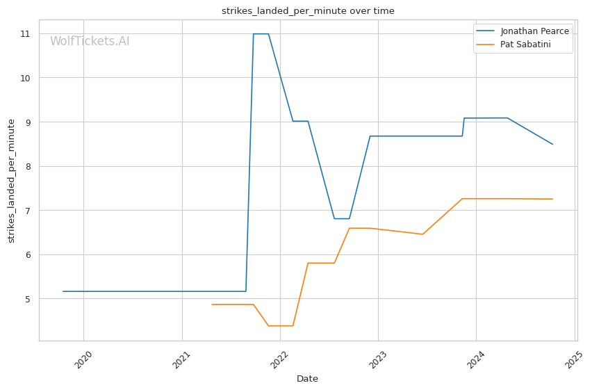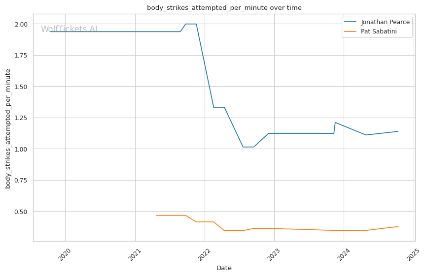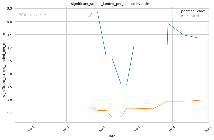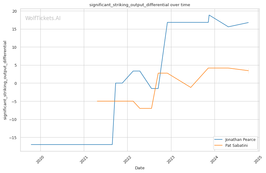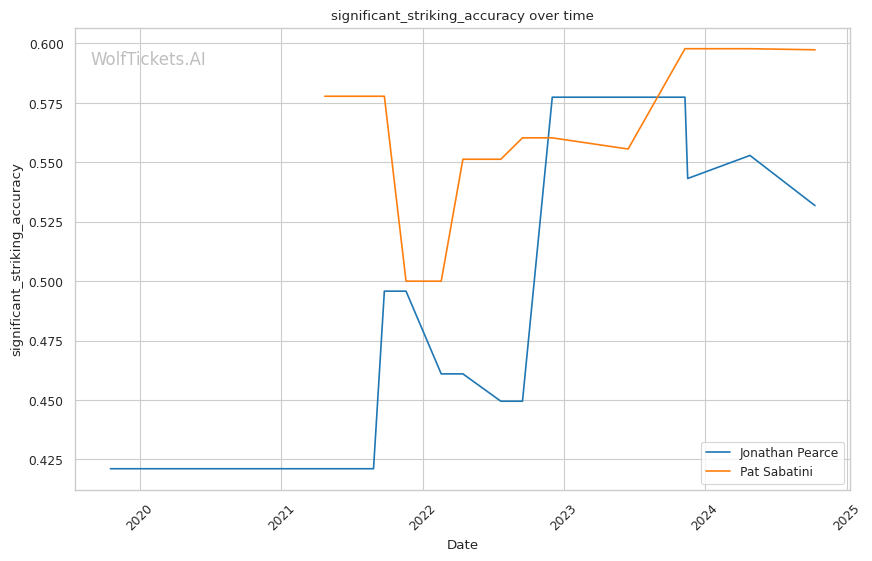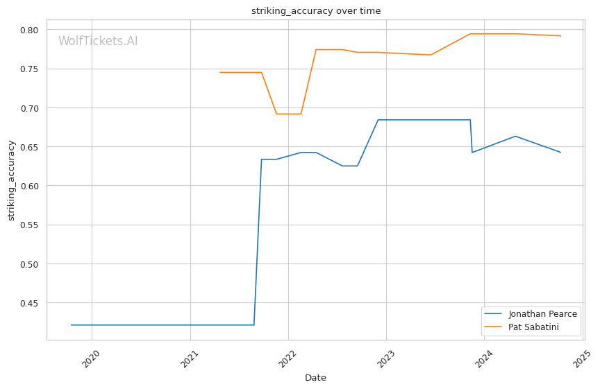 Sabatini's striking, while not his primary weapon, has shown improvement over his UFC career. However, it remains a potential vulnerability, with his recent losses coming by knockout. His striking defense percentage of 49.42% suggests there might be openings for Pearce to exploit in the standup exchanges.