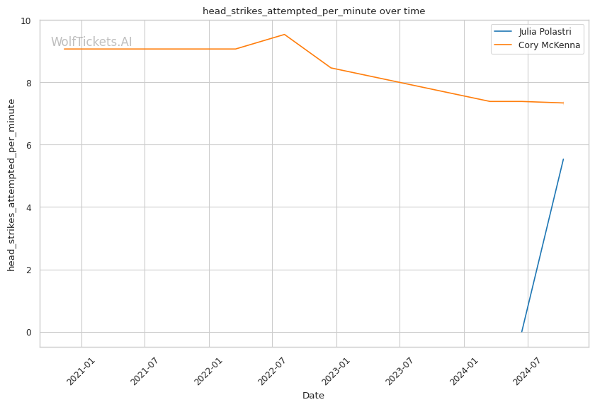 | Head Strikes Attempted per Minute | 5.533 | 7.289 | 6.260 | |