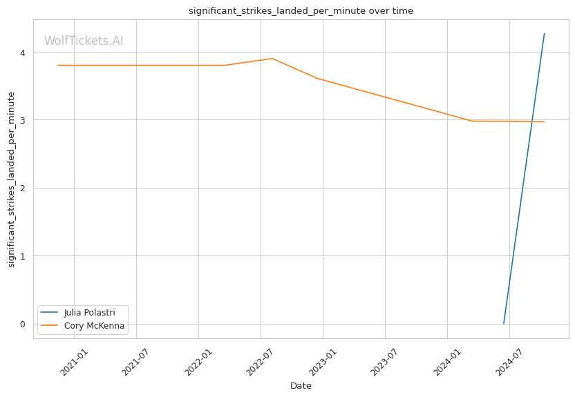 However, Polastri's most recent fight against Josefine Knutsson exposed some holes in her striking defense. She absorbed 4.53 significant head strikes per minute and lost the fight by unanimous decision. Shoring up her striking defense will be crucial against a tough striker like Cory McKenna. The recent loss might impact her confidence, but it could also motivate her to showcase improvements.