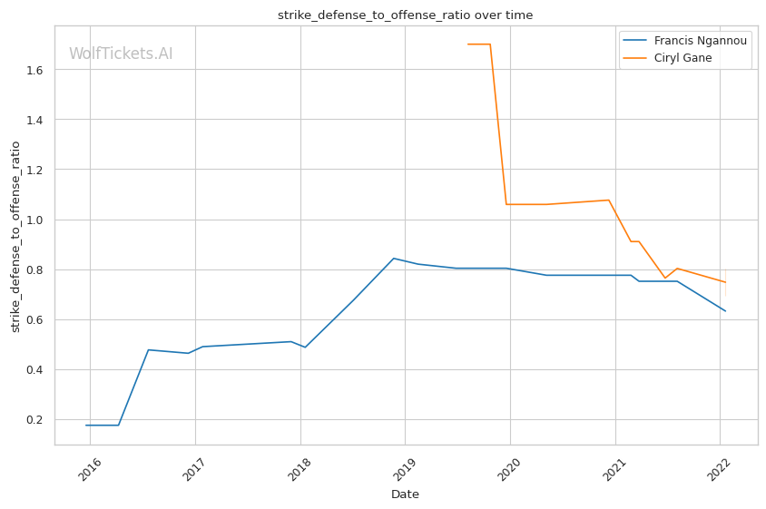 | Significant Striking Defense to Offense Ratio | 67.20% | 75.53% | 83.55% | |