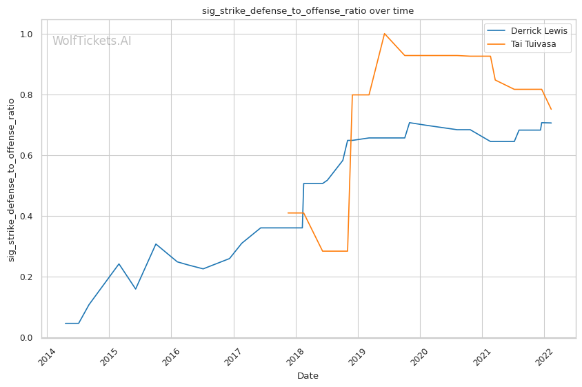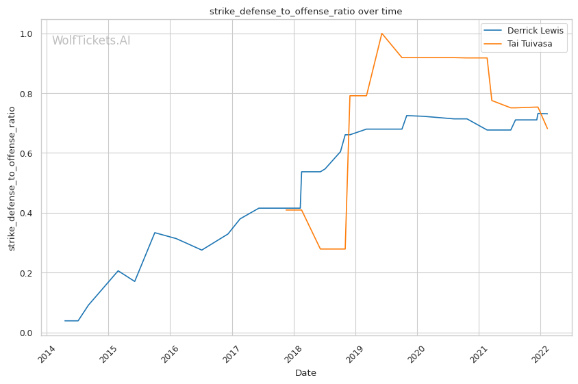 | Significant Striking Defense to Offense Ratio | 70.49% | 75.08% | 120.74% | |