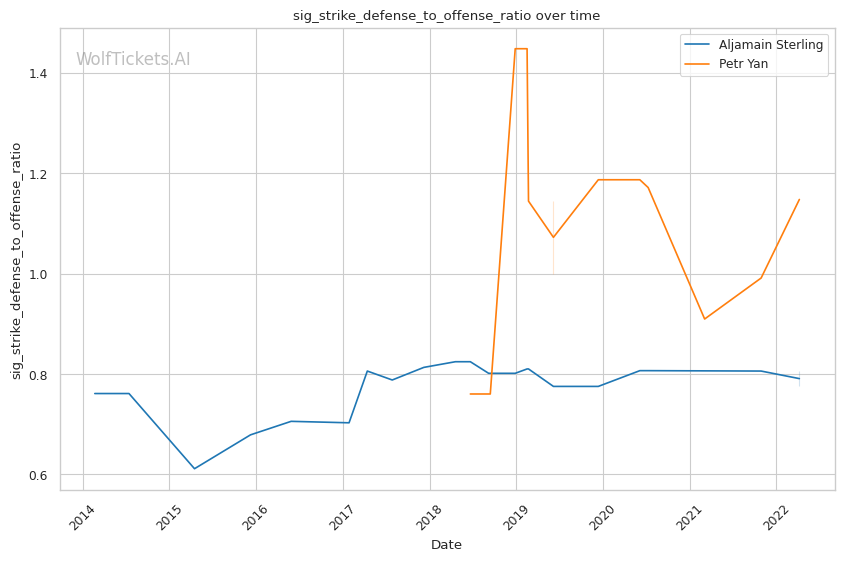 | Significant Striking Defense to Offense Ratio | 77.56% | 114.76% | 122.06% | |
