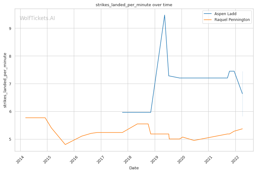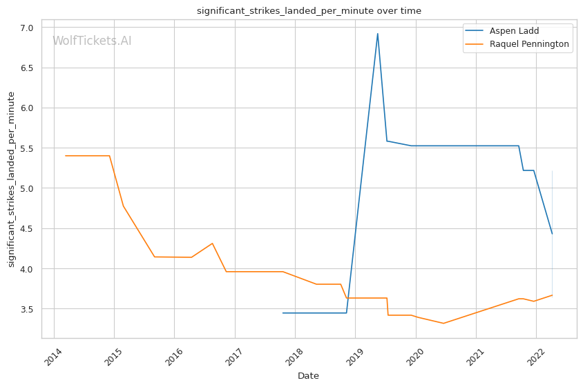 | Stat | Aspen Ladd | Raquel Pennington | Weight Class Average | |
