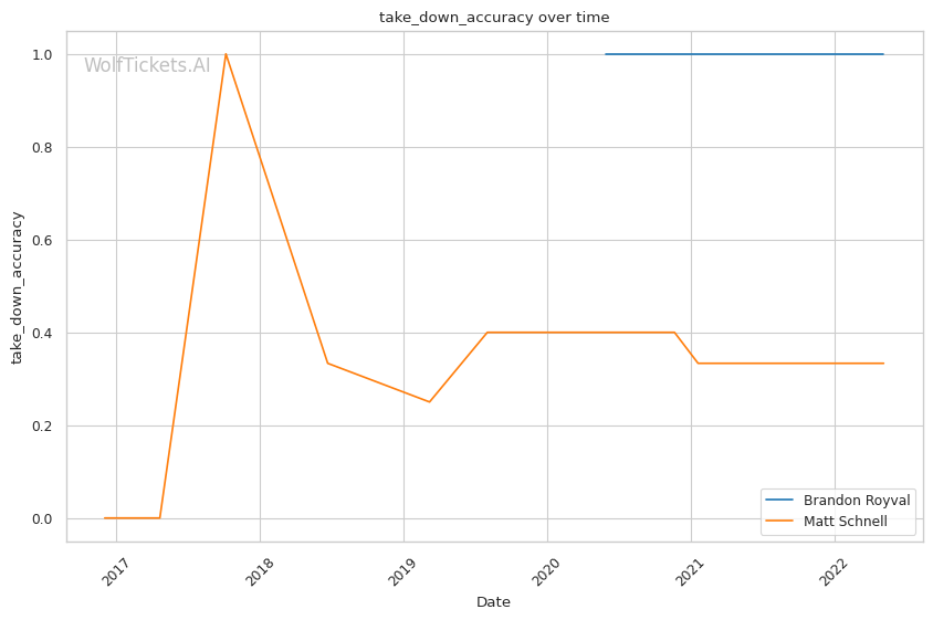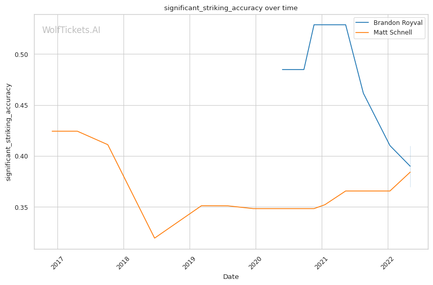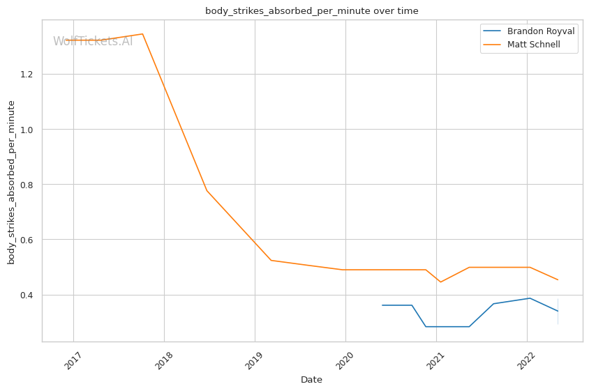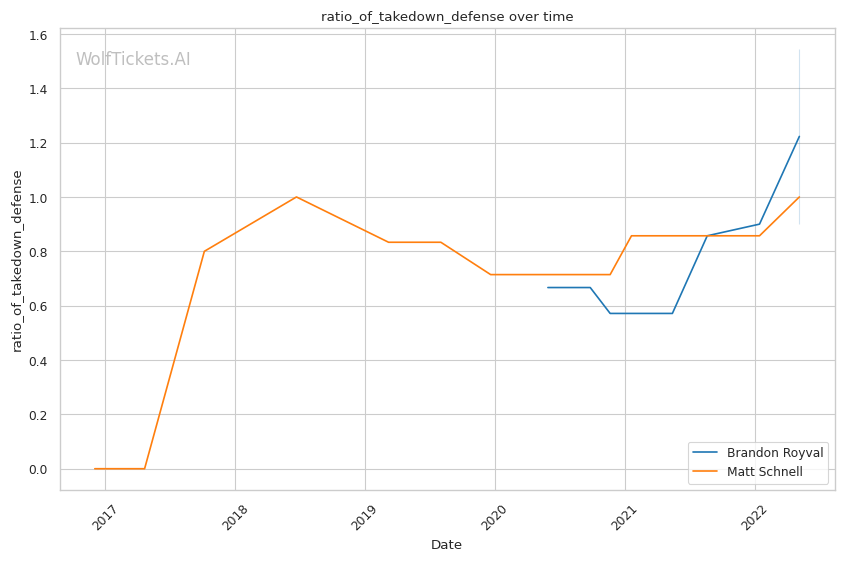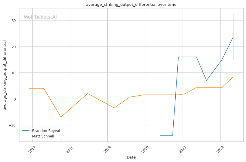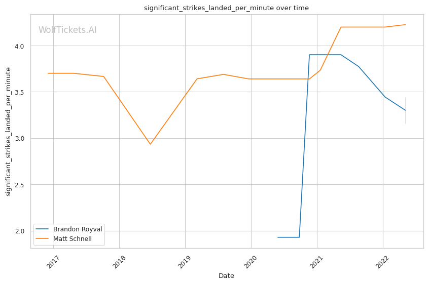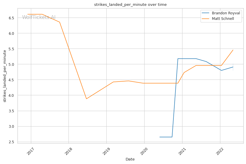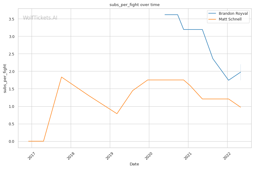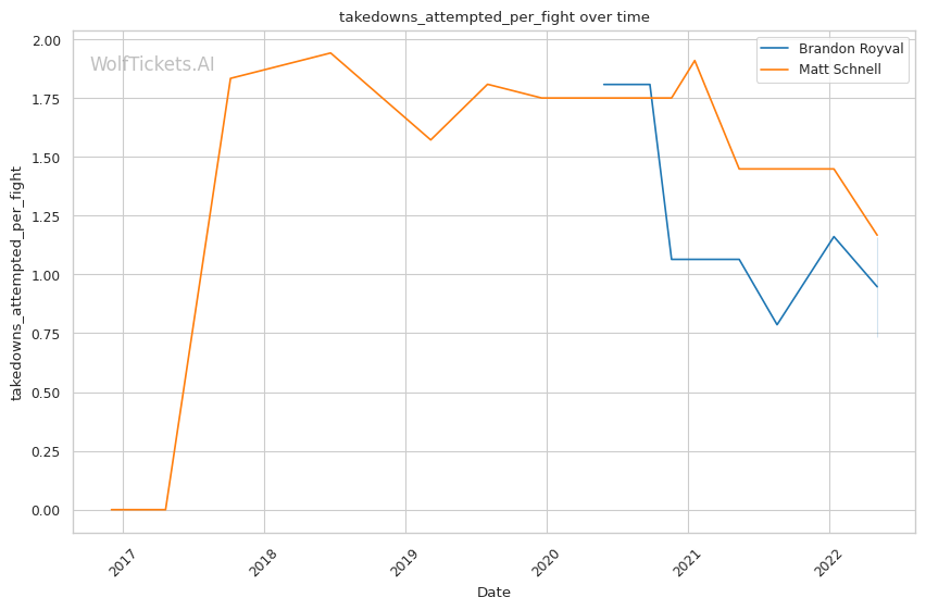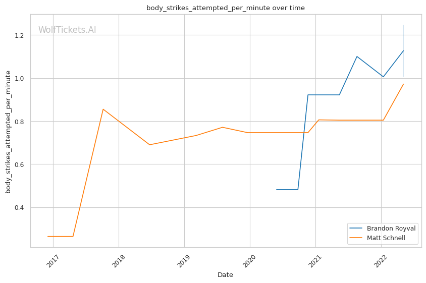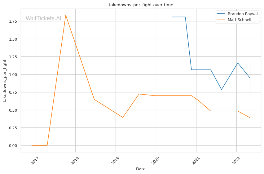 | Stat | Brandon Royval | Matt Schnell | Weight Class Average | |