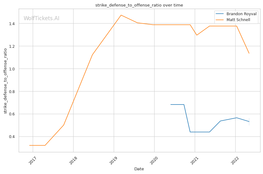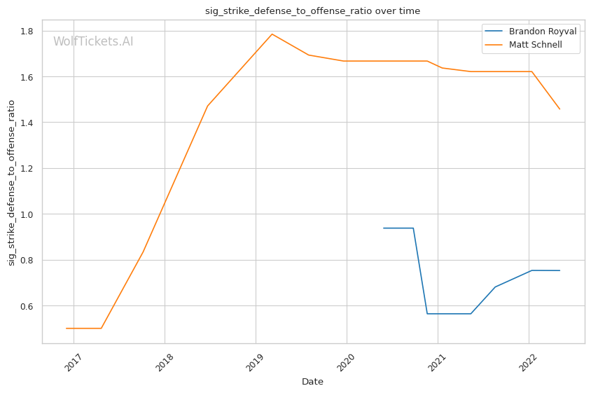 | Significant Striking Defense to Offense Ratio | 75.19% | 145.71% | 142.69% | |