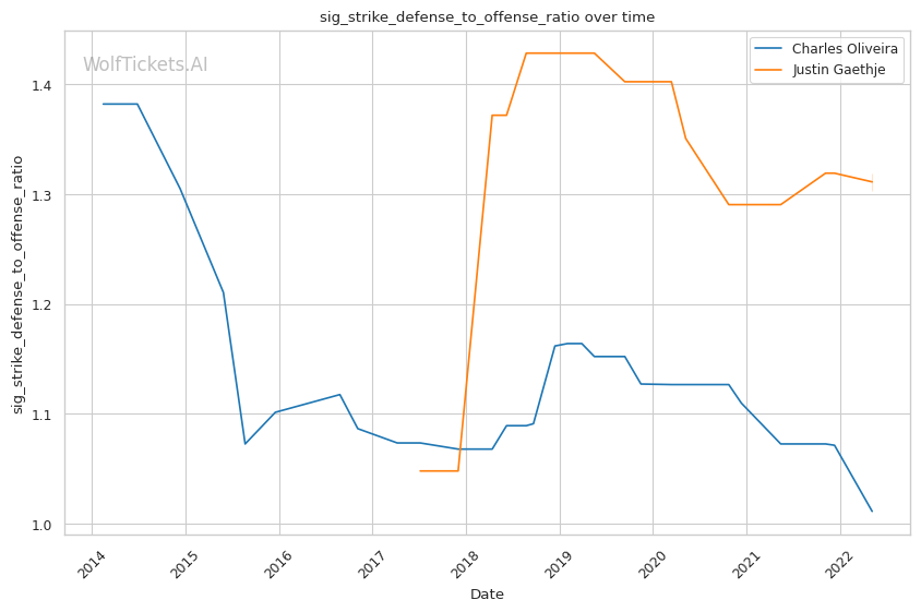 | Significant Striking Defense to Offense Ratio | 101.14% | 130.32% | 125.44% | |
