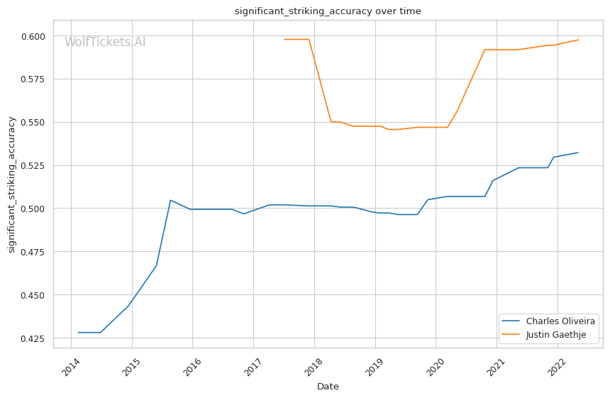 | Significant Striking Accuracy | 53.22% | 60.05% | 45.90% | |