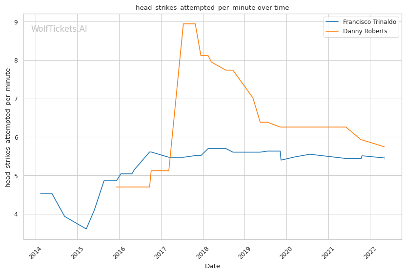 | Head Strikes Attempted per Minute | 5.398 | 5.743 | 7.434 | |
