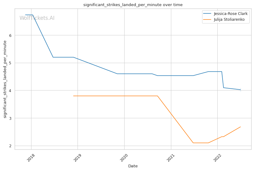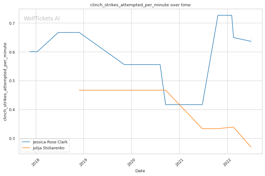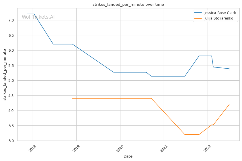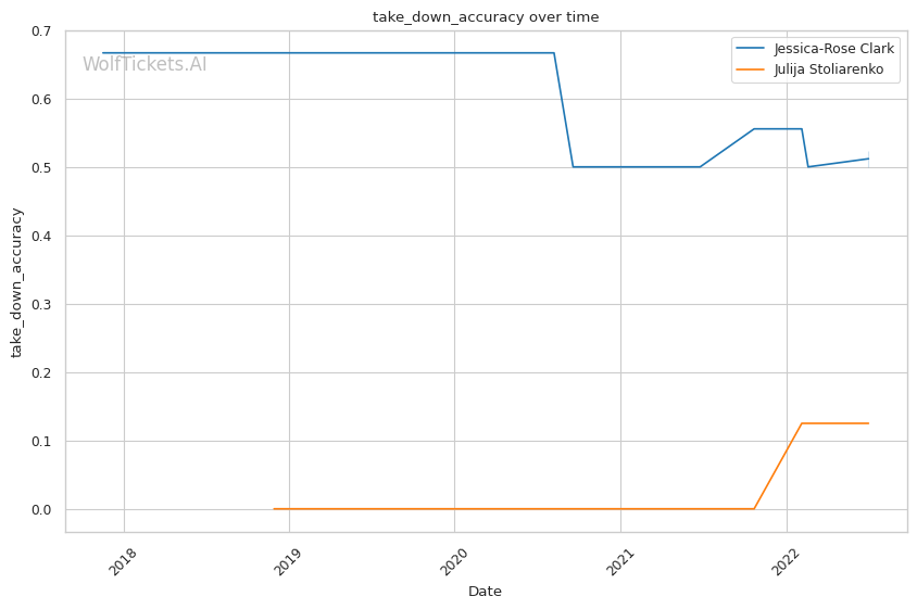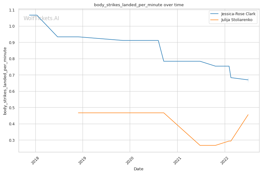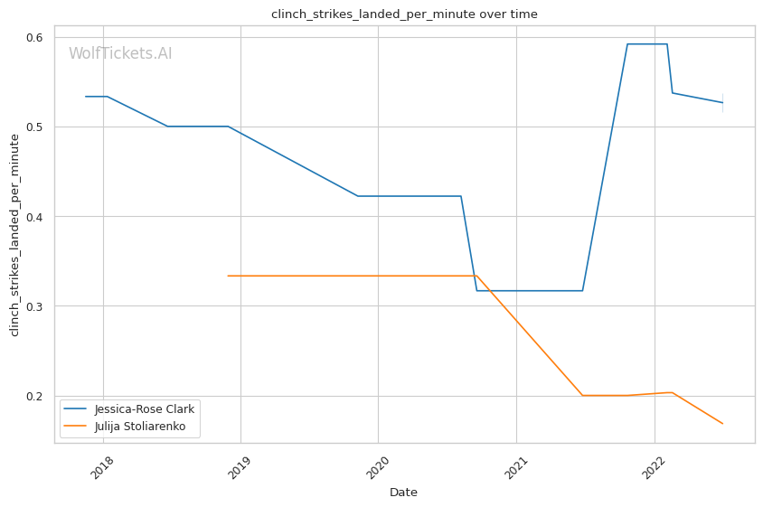 | Stat | Jessica-Rose Clark | Julija Stoliarenko | Weight Class Average | |
