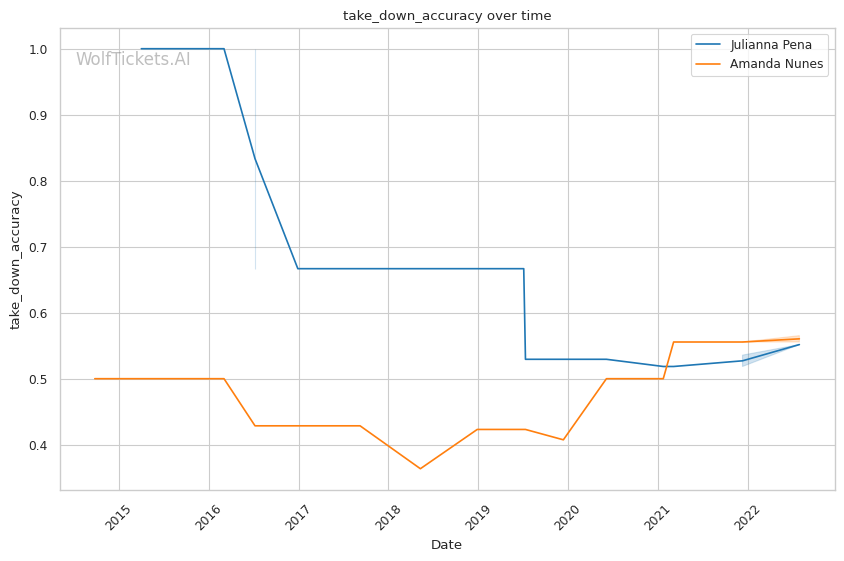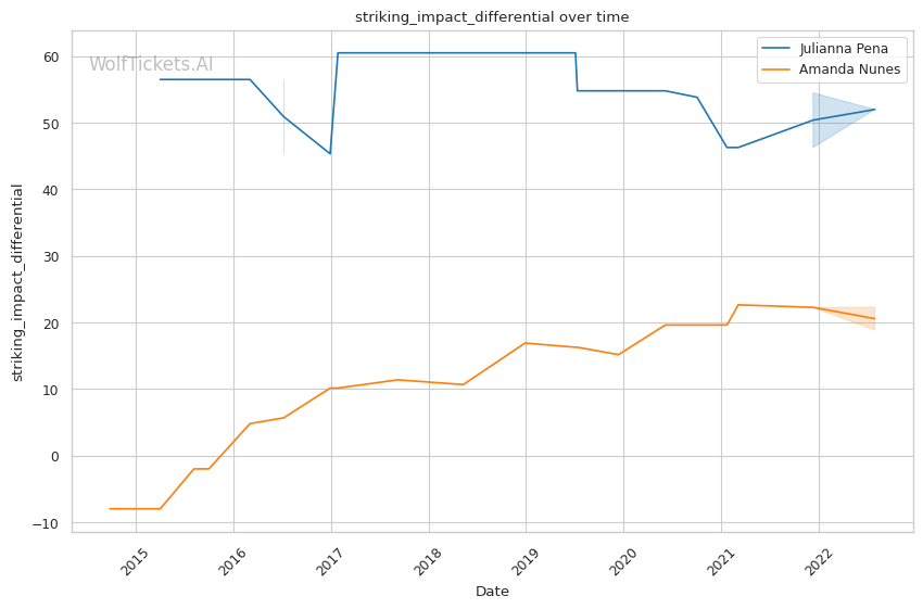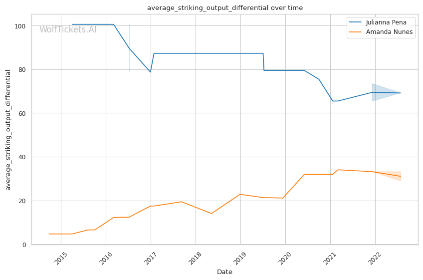 | Stat | Julianna Pena | Amanda Nunes | Weight Class Average | |