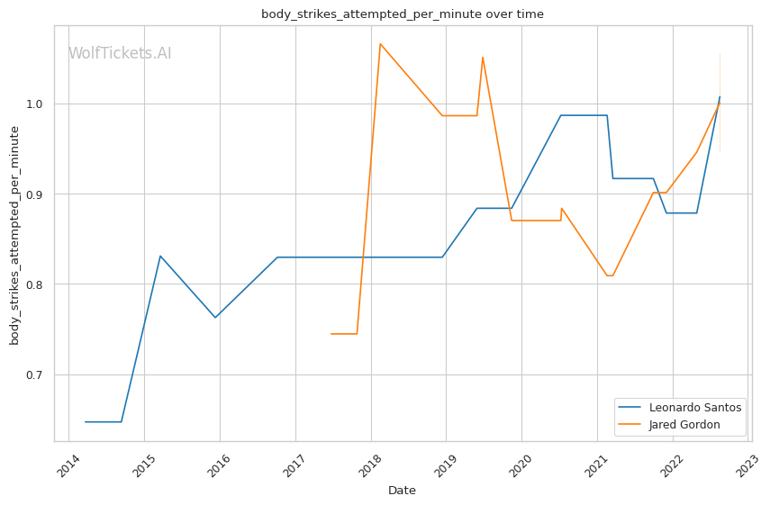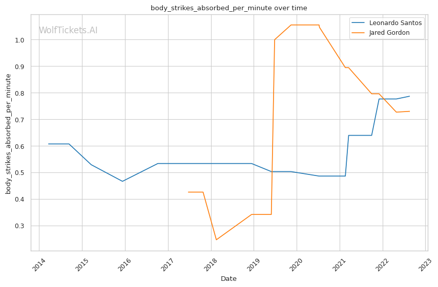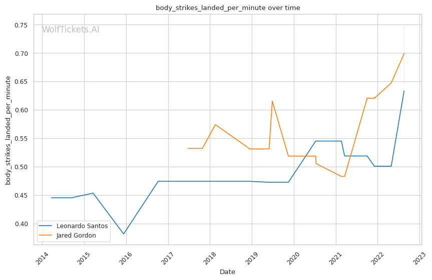 | Body Strikes Landed per Minute | 0.633 | 0.750 | 0.773 | |