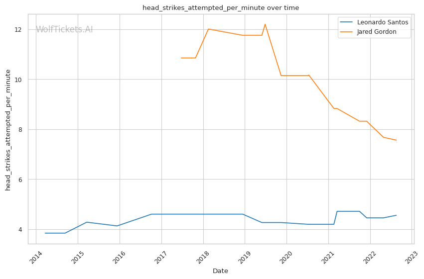 | Head Strikes Attempted per Minute | 4.556 | 7.450 | 7.077 | |