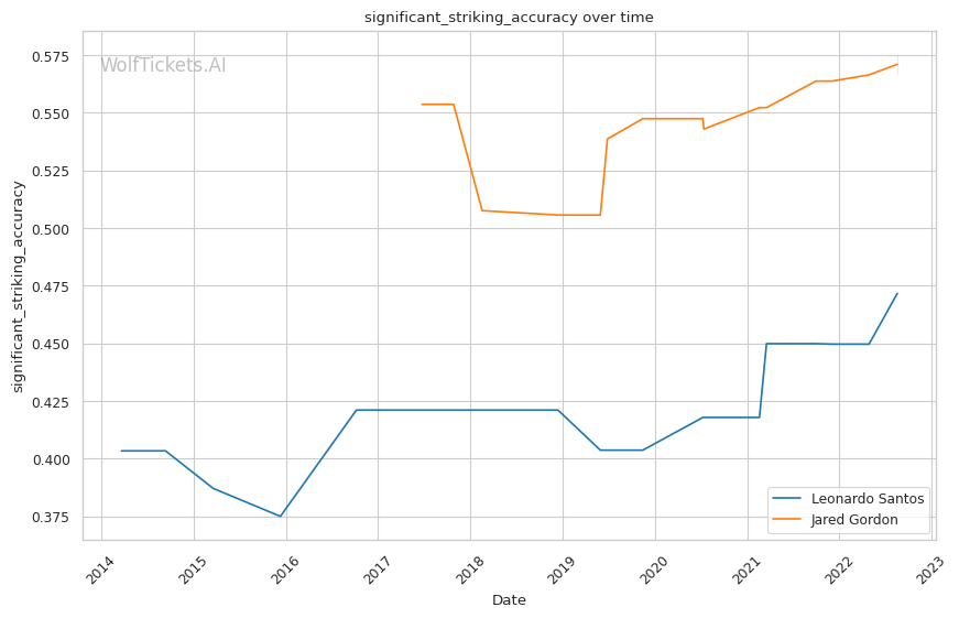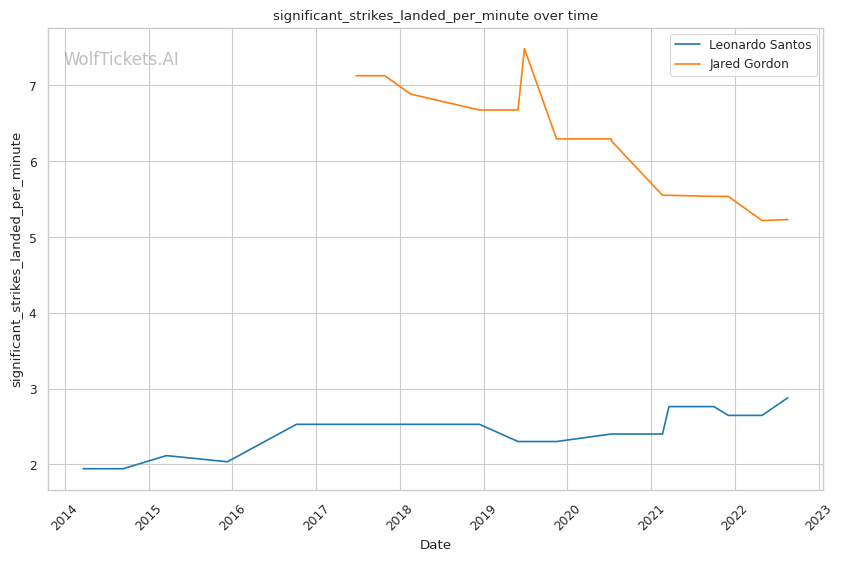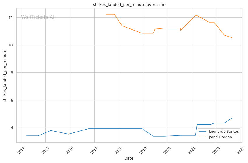 | Stat | Leonardo Santos | Jared Gordon | Weight Class Average | |
