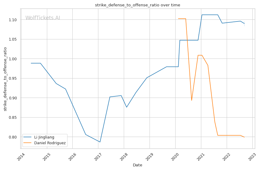 | Significant Striking Defense to Offense Ratio | 116.78% | 86.04% | 128.01% | |