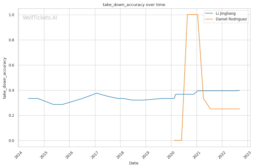 | Takedown Accuracy | 40.00% | 25.00% | 38.20% | |