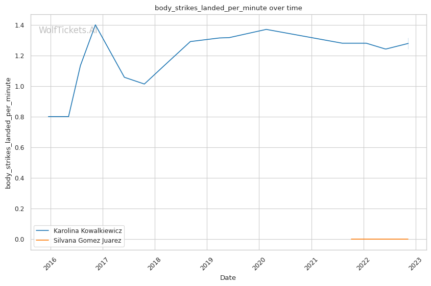 | Stat | Karolina Kowalkiewicz | Silvana Gomez Juarez | Weight Class Average | |