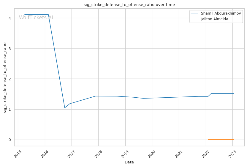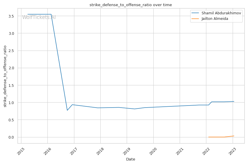 | Significant Striking Defense to Offense Ratio | 151.60% | 0.00% | 93.95% | |