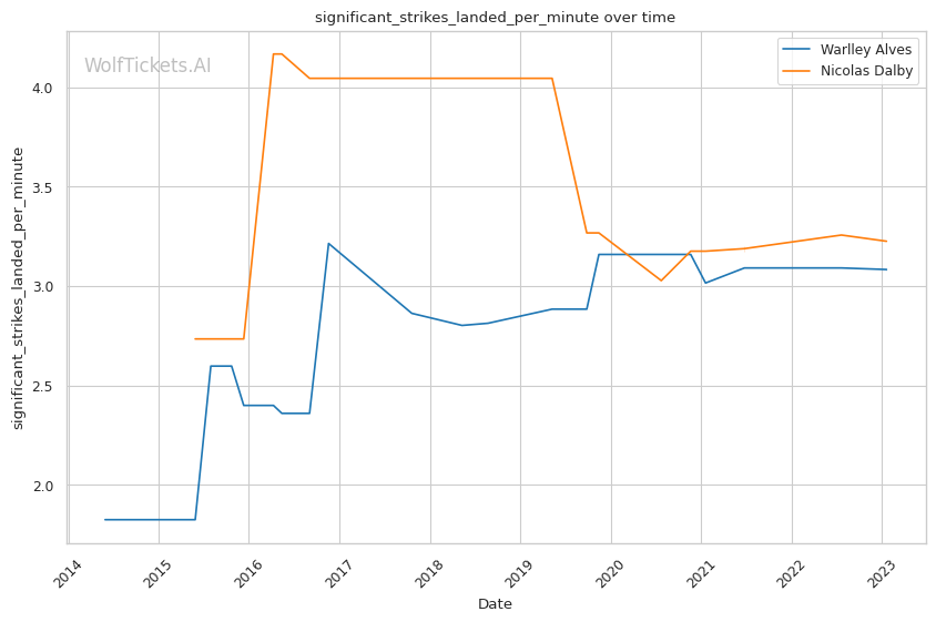 | Stat | Warlley Alves | Nicolas Dalby | Weight Class Average | |