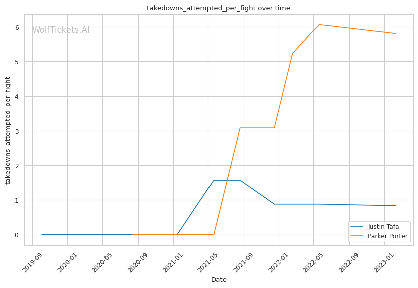 | Takedowns Attempted per Fight | 0.833 | 5.550 | 2.587 | |