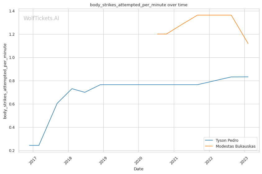| Body Strikes Attempted per Minute | 0.833 | 1.118 | 1.121 | |