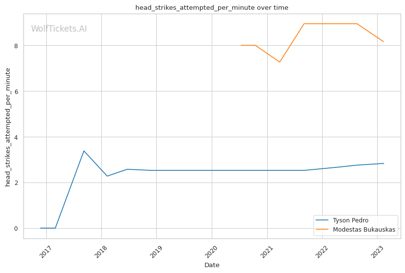 | Head Strikes Attempted per Minute | 2.906 | 8.165 | 6.441 | |