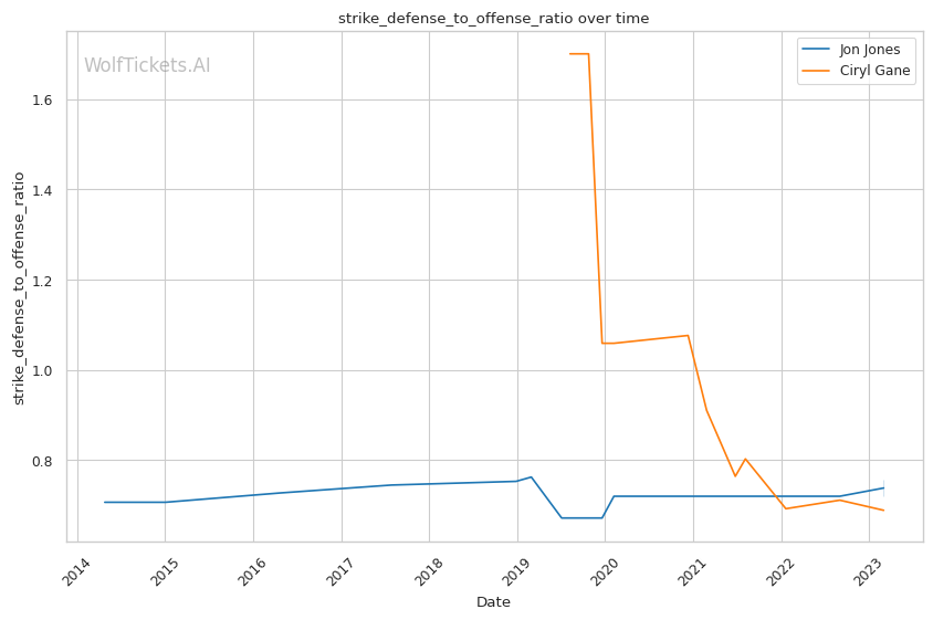 | Striking Defense to Offense Ratio | 75.64% | 68.88% | 68.71% | |