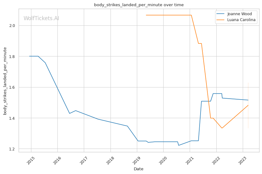 | Stat | Joanne Wood | Luana Carolina | Weight Class Average | |