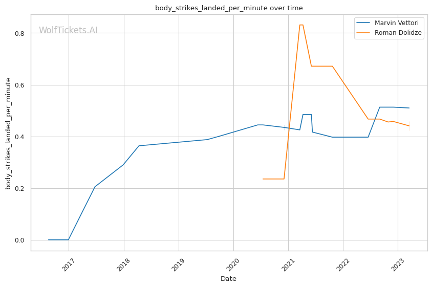 | Body Strikes Landed per Minute | 0.510 | 0.424 | 0.824 | |