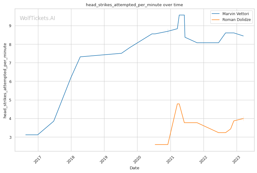 | Head Strikes Attempted per Minute | 8.439 | 4.112 | 6.335 | |