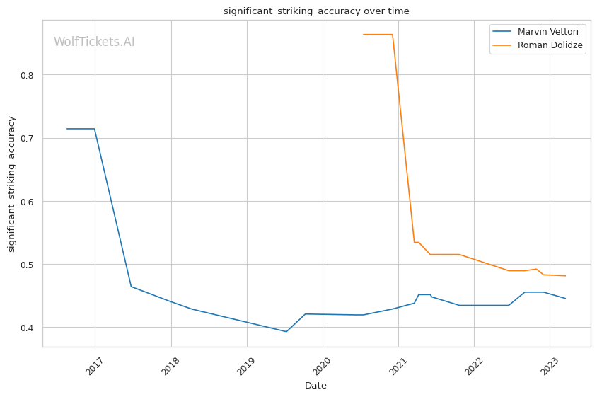| Significant Striking Accuracy | 44.56% | 47.99% | 48.60% | |