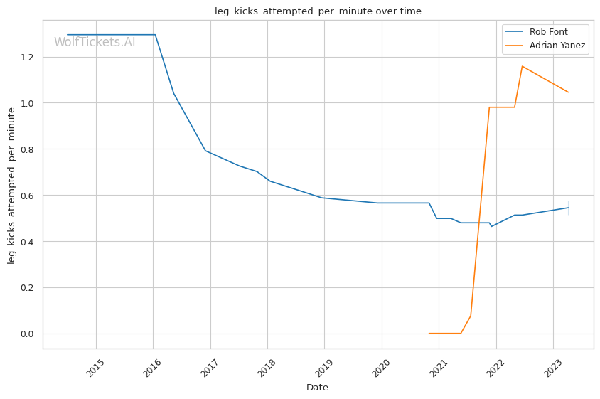 | Leg kicks Attempted per Minute | 0.577 | 1.046 | 0.791 | |