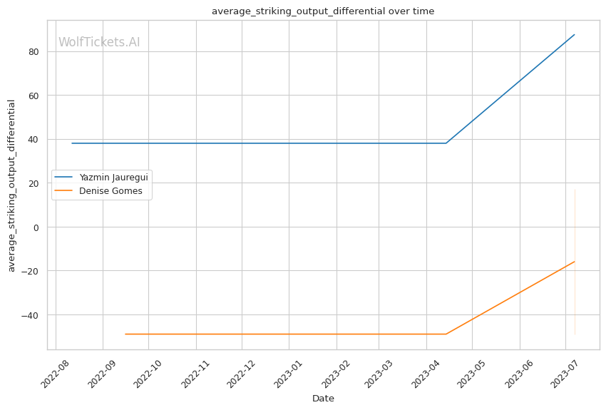 | Stat | Yazmin Jauregui | Denise Gomes | Weight Class Average | |