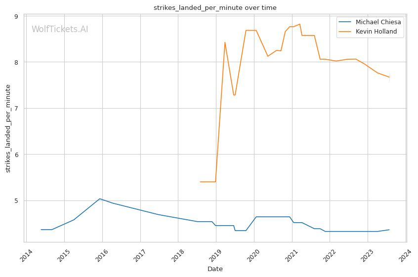 | Stat | Michael Chiesa | Kevin Holland | Weight Class Average | |