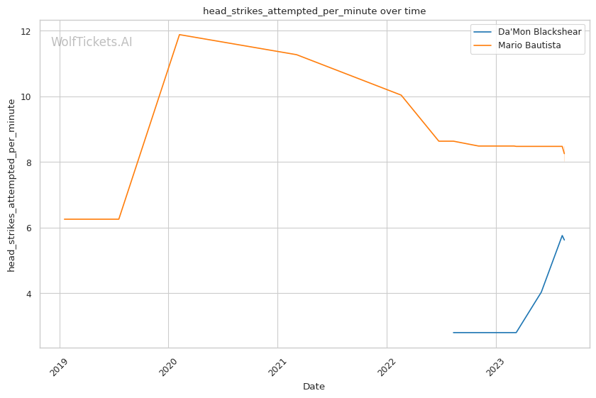 | Head Strikes Attempted per Minute | 5.623 | 8.034 | 6.710 | |