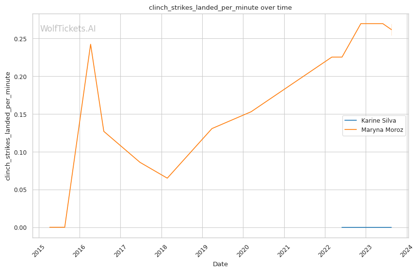 | Stat | Karine Silva | Maryna Moroz | Weight Class Average | |