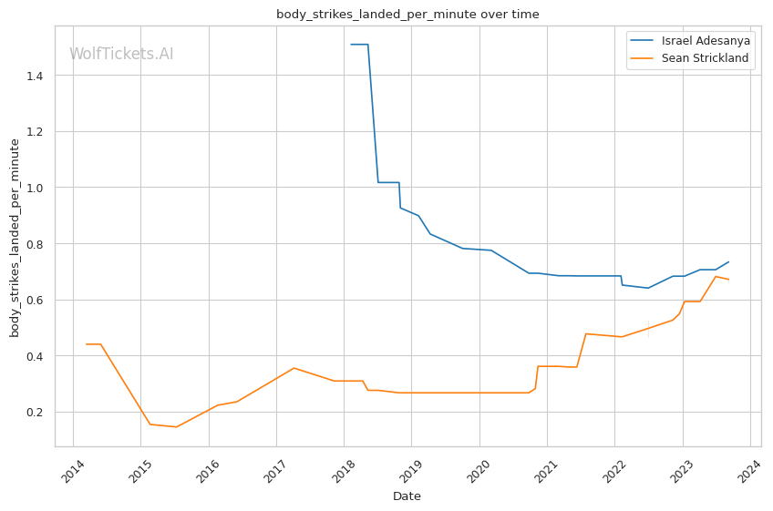| Body Strikes Landed per Minute | 0.733 | 0.661 | 0.959 | |