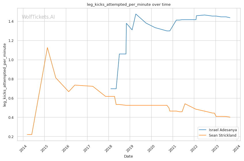 | Leg kicks Attempted per Minute | 1.436 | 0.394 | 1.165 | |