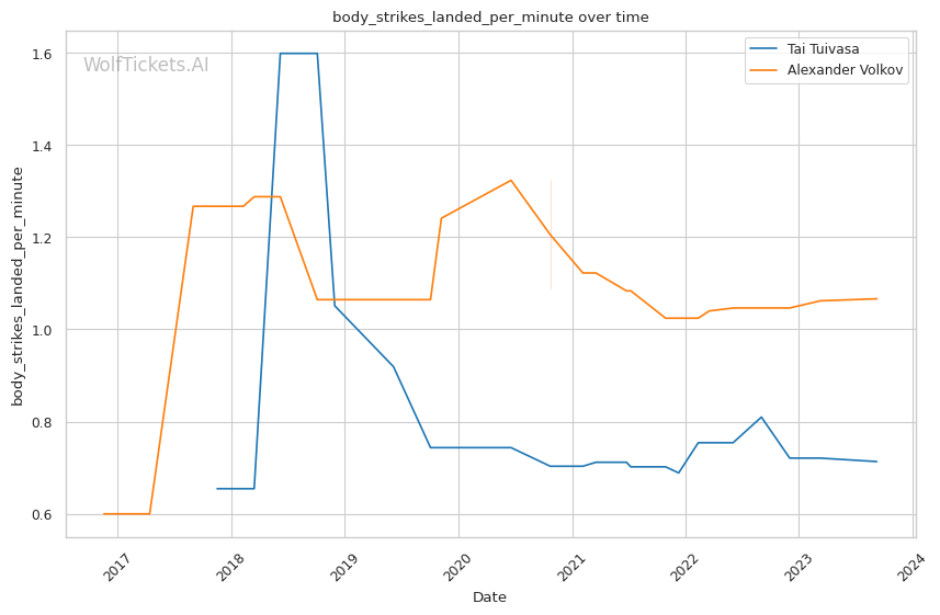 | Body Strikes Landed per Minute | 0.713 | 1.071 | 0.829 | |