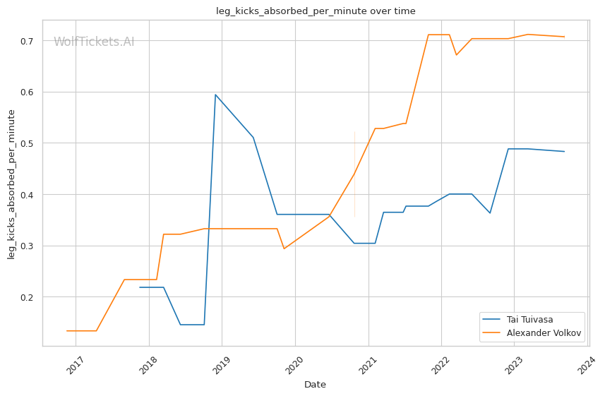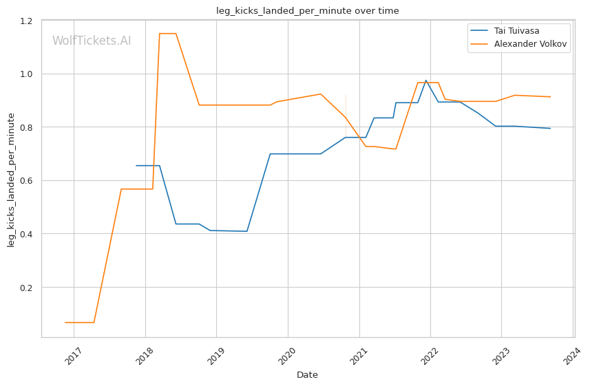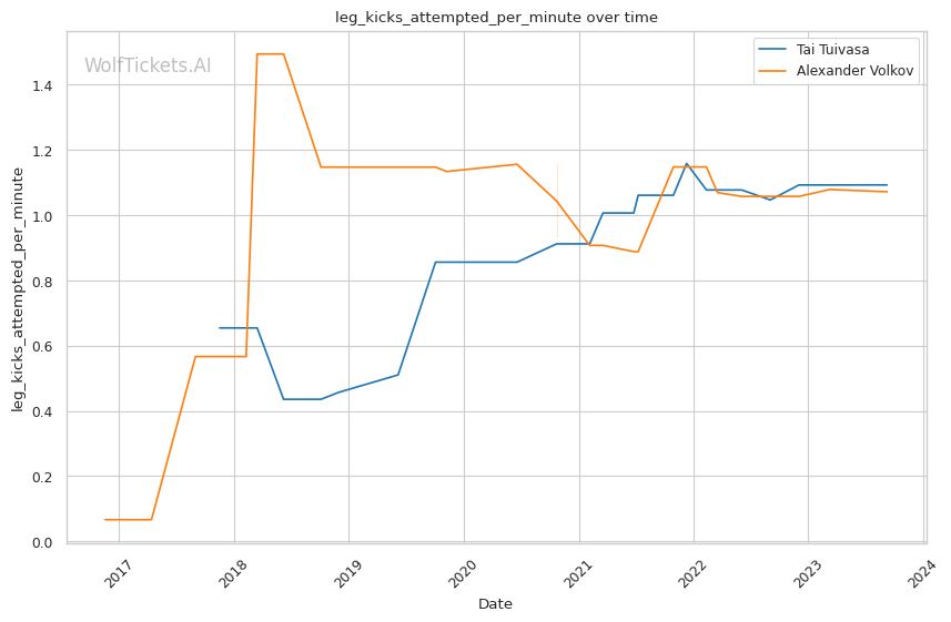 | Leg kicks Attempted per Minute | 1.093 | 1.065 | 0.743 | |