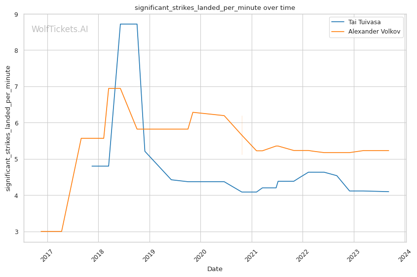 | Stat | Tai Tuivasa | Alexander Volkov | Weight Class Average | |