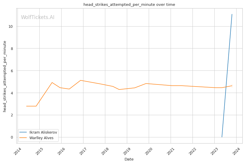 | Head Strikes Attempted per Minute | 11.077 | 4.804 | 6.365 | |
