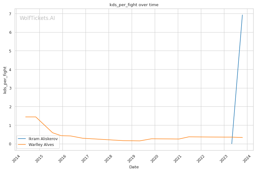 Aliskerov is riding high after a first round KO of Phil Hawes back in May. With 14 wins and just 1 loss, he's proven to be a dangerous striker who can end fights suddenly. Alves on the other hand has struggled as of late, losing 4 of his last 6. While he has more experience than Aliskerov, his downward trajectory indicates that his best days may be behind him. WolfTicketsAI has predicted Aliskerov to get his hand raised in this one. Given Aliskerov's momentum and Alves' recent skid, this seems like a sound prediction. Aliskerov's fight ending power coupled with Alves' deteriorating durability spells trouble for the veteran. Don't be surprised if Aliskerov adds another KO to his highlight reel.