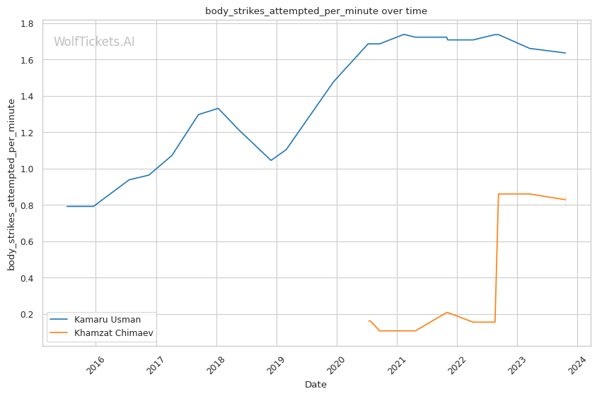 | Body Strikes Attempted per Minute | 1.636 | 0.797 | 1.138 | |