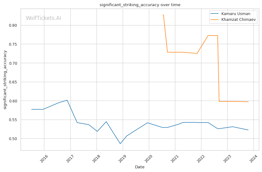 | Significant Striking Accuracy | 52.23% | 59.62% | 48.40% | |