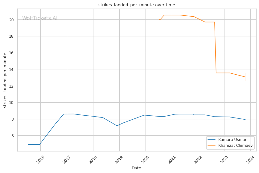 In terms of recent performance metrics, Chimaev has significant advantages in knockdowns, striking accuracy and impact. He also has never been taken down in his UFC fights, while Usman's takedown defense has slipped recently.