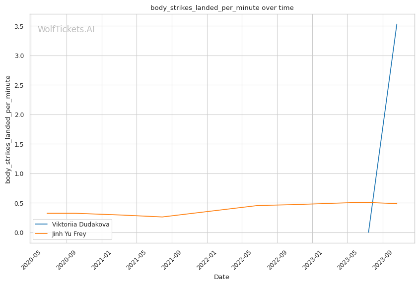 | Stat | Viktoriia Dudakova | Jinh Yu Frey | Weight Class Average | |