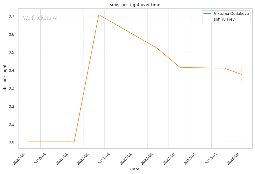 WolfTicketsAI has predicted Viktoriia Dudakova to defeat Jinh Yu Frey. This prediction seems reasonable based on the data provided. Dudakova is undefeated in her 7 professional fights, demonstrating potential as an up-and-coming contender. However, her record is still quite limited, so we must be cautious in evaluating her skills. In contrast, Frey is a veteran of the UFC with over 20 professional fights. But she has struggled as of late, losing 3 of her last 5 bouts. At 38 years old, she appears to be on the downslope of her career. Her recent defeats have exposed deficiencies in her striking defense and takedown ability. Additionally, Frey is coming 3 losses back to back including 1 KO which is always a dangerous sign. Fighters who suffer knockouts are more susceptible to being finished in subsequent fights. While Dudakova lacks experience, she seems to have momentum and athleticism on her side. WolfTicketsAI is wise to favor the young lioness over the aging former contender in this matchup. Barring a veteran resurgence from Frey, Dudakova should be able to outpoint her en route to a decision win.